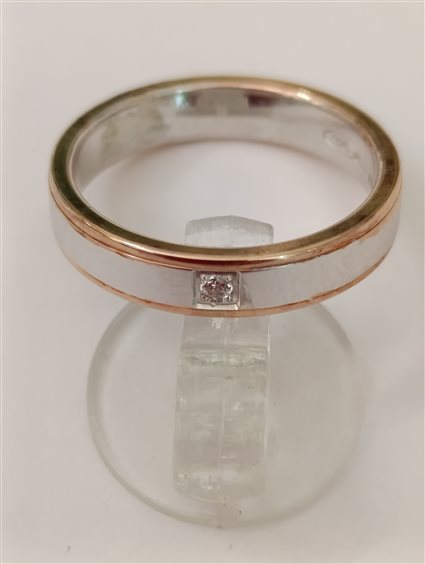 ELEGANTE ANELLO FEDINA IN ARGENTO BICOLORE BIANCO E ROSA CON ZIRCONE DA CT. 0,02 INCASSATO A GRIFFE . PREZZO DI REALIZZO, SU UNICO ANELLO CON UNICA MISURA.