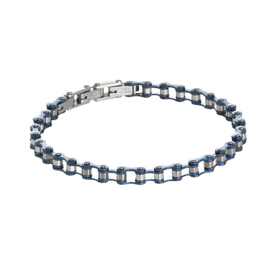 Bracciale con maglie in Pvd blu e acciaio Bracciale a maglie modulari Pvd blu e acciaio bianco 316L. Lunghezza 20 a cm 22. maglia larga 6mm Cod. ABR413B
