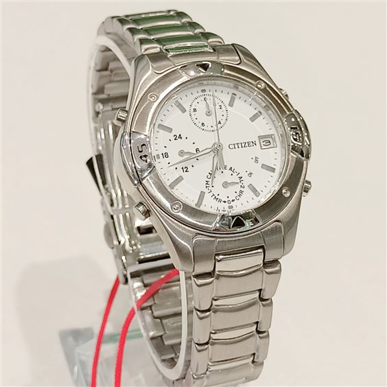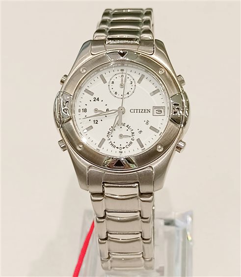 Orologio multifunzione al quarzo con datario ed allarme, vetro minerale.