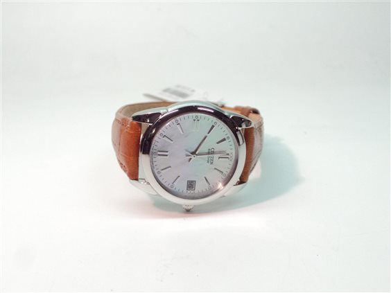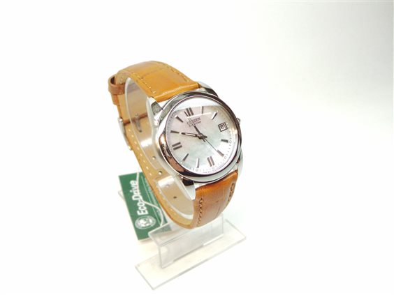 Citizen Eco-Drive a ricarica luce, vetro minerale, cassa in acciaio tonda diametro 31m impermeabile fino a 3atm, quadrante madreperla, cinturino pelle marrone
