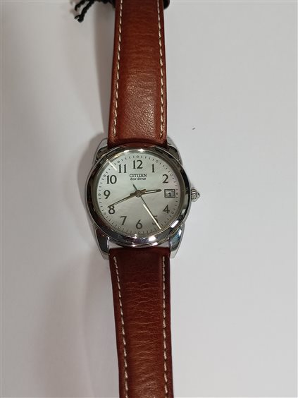 orologio donna 32 mm fondo colore madreperlanumeri arabi cinturino pelle marrone movimento ecodrive a carica infinita. subacqueo 50mt