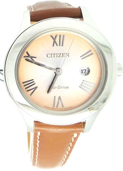 OROLOGIO DONNA CASSA IN ACCIAIO ANALLERGICO ø 32 MM, MOVIMENTO CITIZEN BREVETTATO ECO-DRIVE AL QUARZO, QUADRANTE ROSA PESCA SFUMATO, NUMERI ROMANI E LANCETTE DELLE ORE,DEI MINUTI E SECONDI COLOR ARGENTO, CON DATA ALLE ORE 3, VETRO MINERALE, SPESSORE CASSA 9 MM, RESISTENTE ALL' ACQUA FINO A 5 ATM, CINTURINO IN VERA PELLE LISCIA COLOR MARRONE , CHIUSURA IN ACCIAIO AD ARDIGLIONE, FONDELLO SERRATO A PRESSIONE