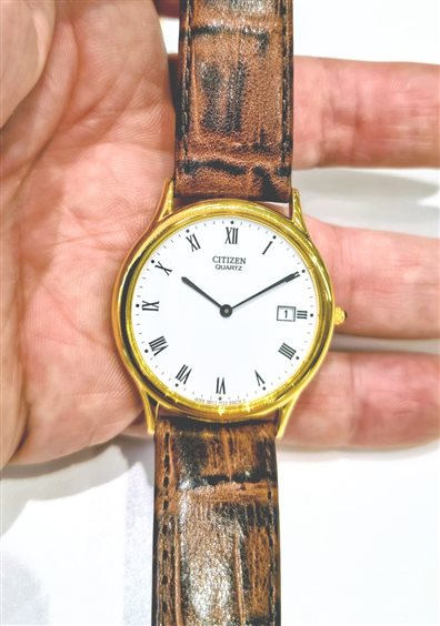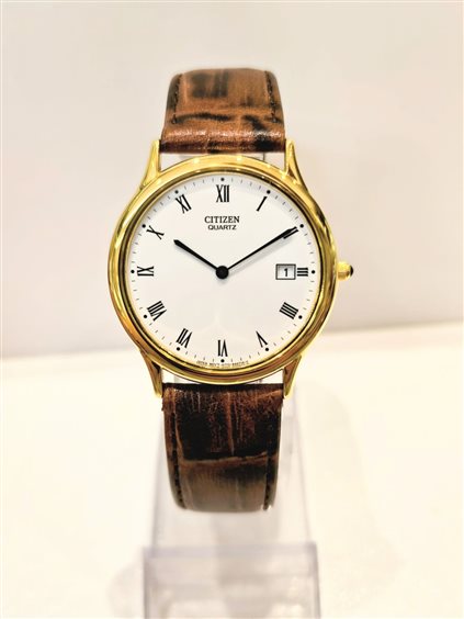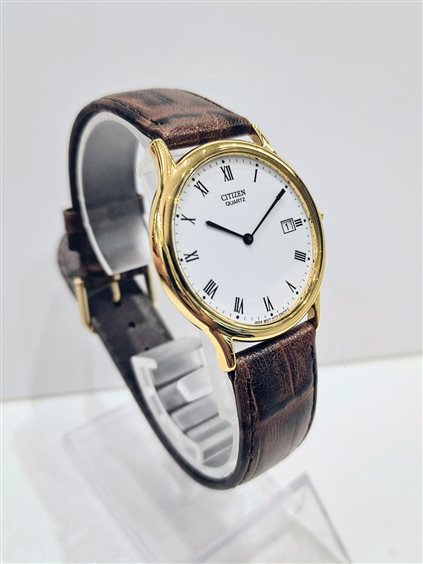 Movimento quarzo con batteria cassa dorata cinturino pelle Cassa mm35.