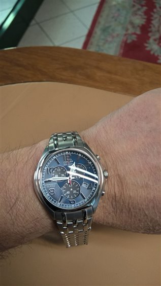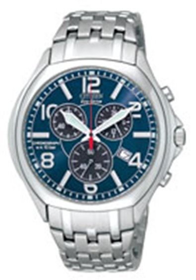 orologio citizen ecodrive cronografo datario cassa e bracciale in acciaio vetro minerale lenticolare bombato wr 10 bar