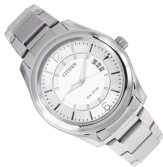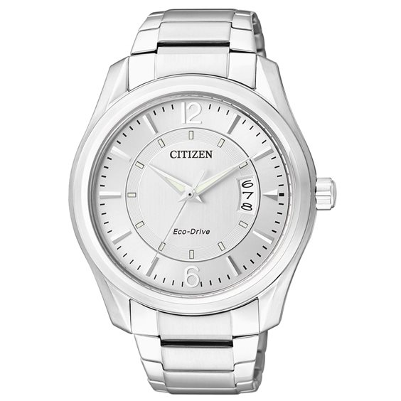 Orologio con cassa in acciaio lucido e satinato, diametro 43mm. Cinturino in acciaio lucido e satinato con chiusura di sicurezza. Quadrante silver e fondello serrato a vite. Movimento Eco-Drive (a carica luce infinita), con riserva di carica di 240 giorni. Impermeabilità 5 BAR.