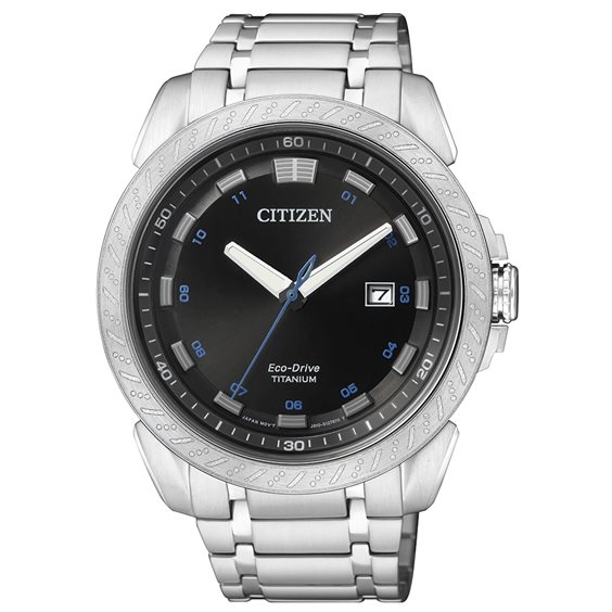 AW1330-56E Nero Movimento Eco-Drive (a carica luce infinita), riserva di carica di 8 mesi Caratteristiche Cassa e bracciale in SuperTitanio Ti+IP, vetro zaffiro, fondo serrato a vite. WR 10 bar Dimensioni Diametro cassa 43 mm