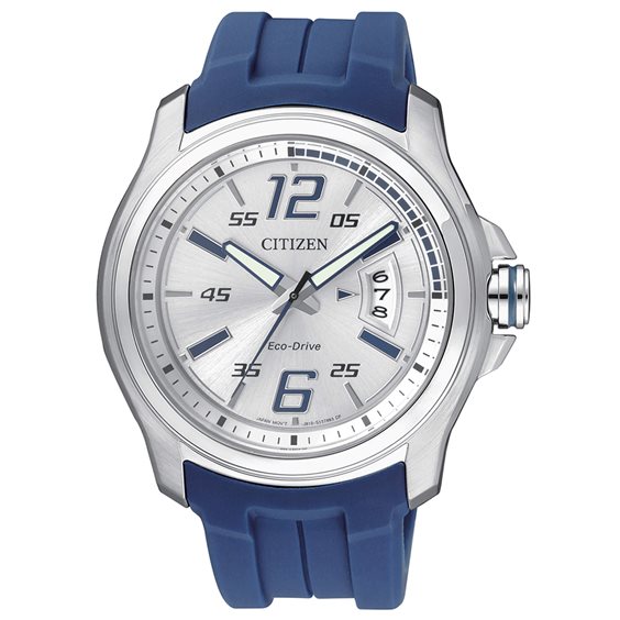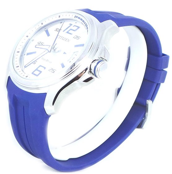 Orologio uomo, movimento ECO-DRIVE a carica luce con riserva di carica di 240 giorni , fondello a vite, cassa in acciaio , cinturino in morbido poliuretano, diametro cassa 43mm., impermeabile a 10atm.(100m.), quadrante bianco.