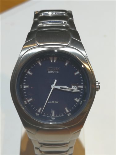 CITIZEN UOMO COLLEZIONE ORE FELICI AL QUARZO CASSA E BRACCIALE IN ACCIAIO QUADRANTE BLU CALENDARIO ORE 3 IMPERMEABILE 10 ATM