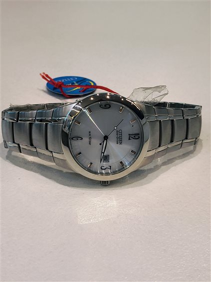 OROLOGIO CITIZEN SOLO TEMPO UOMO, LINEE MODERNE E SEMPRE ATTUALI UN DESIGN DAVVERO AZZECCATO SFERE LUMINESCENTI QUADRANTE OPALESCENTE INDICI E NUMERI ARABI. CINTURINO A SCALARE DEDICATO . VETRO MINERALE BOMBE'.