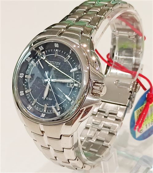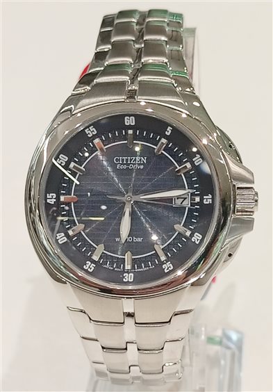 Orologio sportivo da uomo di marca Citizen, collezione bm of. Questo orologio ha una cassa 40mm, 44.00 mm con la corona. il bracciale è in acciaio con chiusura deployante. Vetro bombè, quadrante color blu, sfere luminescenti.ottima lettura. cassa in acciaio, 40.00 mm di diametro quadrante blu movimento eco-drive a carica luce infinita, con riserva di carica di 240 giorni bracciale in acciaio con chiusura deployante datario vetro minerale subacqueo 100 metri fondo chiuso a vite