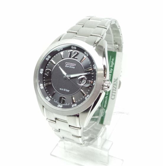 OROLOGIO CITIZEN, DALLE DOTI DI GRANDE SEGNATEMPO, CON NUMERI APPLICATI COLOR ACCIAIO SU UNO SPLEDIDO QUADRANTE NERO DALLE MILLE SFACETTATURE, ECO DRIVE MAI CAMBIO PILA. TUTTO IN ACCIAIO SENTORE DI SOLIDITA' E DI GRANDE SICUREZZA. GHIERA SATINATA.