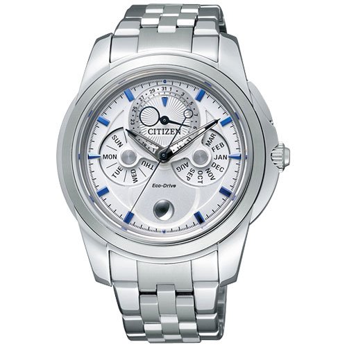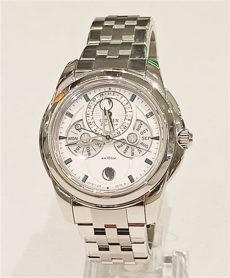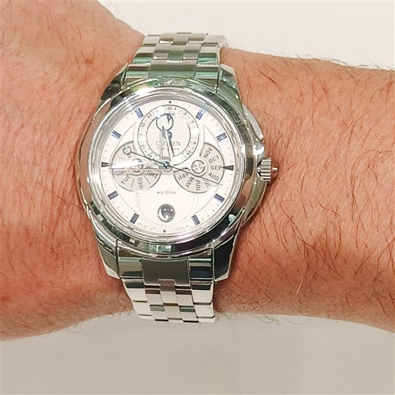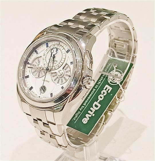 Orologio da uomo in acciaio eco-drive, vetro zaffiro,calendario con fasi lunari.