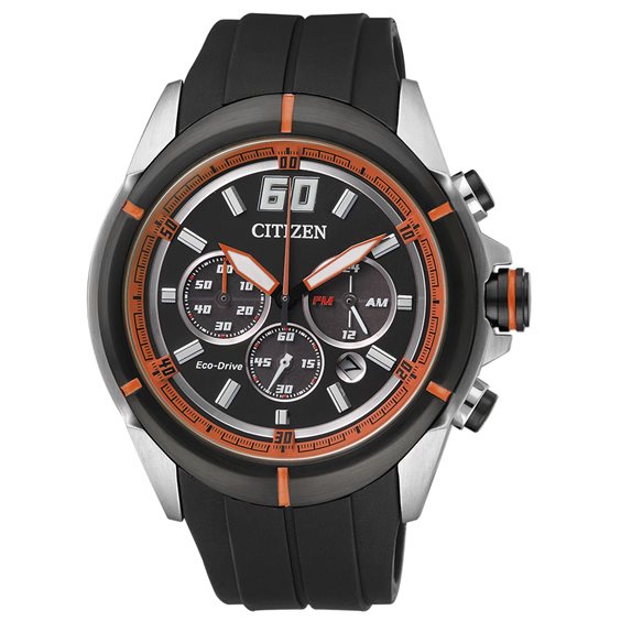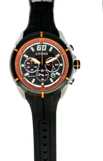 Citizen Movimento Eco Drive a carica luce con riserva di carica 270 giorni Cronografo a 1/5 di secondo fino a 60 minuti Cassa in acciaio con fondo serrato a vite diametro 45.mm Wr 10 bar