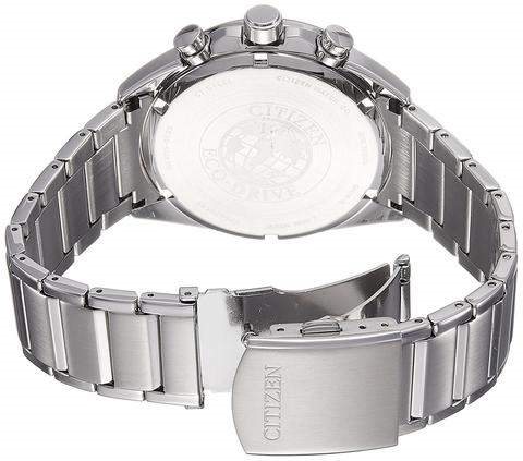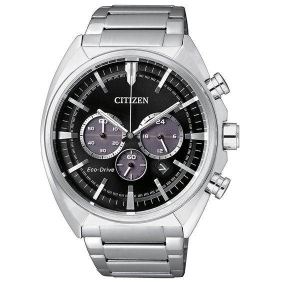 Orologio cronografo Citizen (collezione Chrono) da uomo in acciaio con tecnologia Eco Drive. Orologio in acciaio con cassa di diametro 4,1 cm e spessore di 1,3 cm. Quadrante principale nero, e quadranti più piccoli per la funzione cronografo in grigio/viola. Indici e lancette in acciaio. Cinturino in acciaio con chiusura a doppi pulsanti. Cronografo 1/5 sec, riserva di carica fino a 270 giorni, impermeabilità a 10 bar. Garanzia Internazionale 24 mesi e certificazione Ufficiale Citizen.