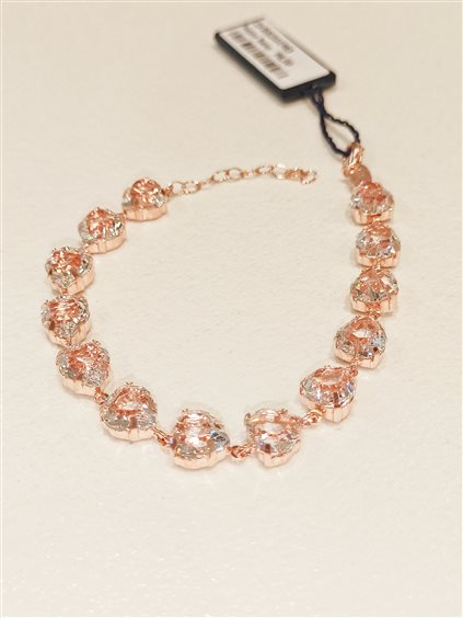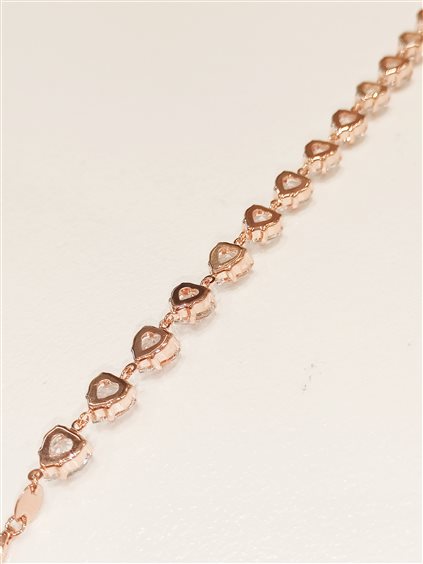 bracciale in argento 925 laminatura in oro rosa cristalli bianchi a cuore. larghezza 8 mm .