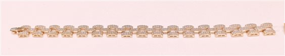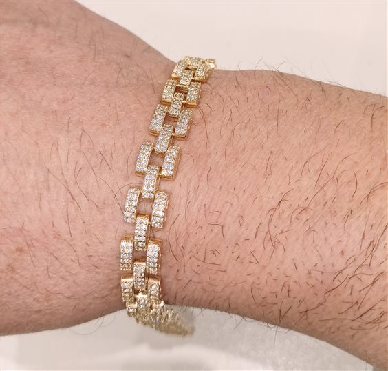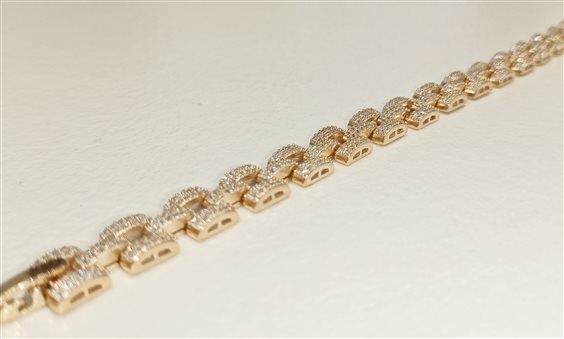 bracciale finemente lavorato maglie incassate a mano con zirconi naturali in oro rosa laminato tutto made in italy tipo maglia classica. morbido all'indosso.