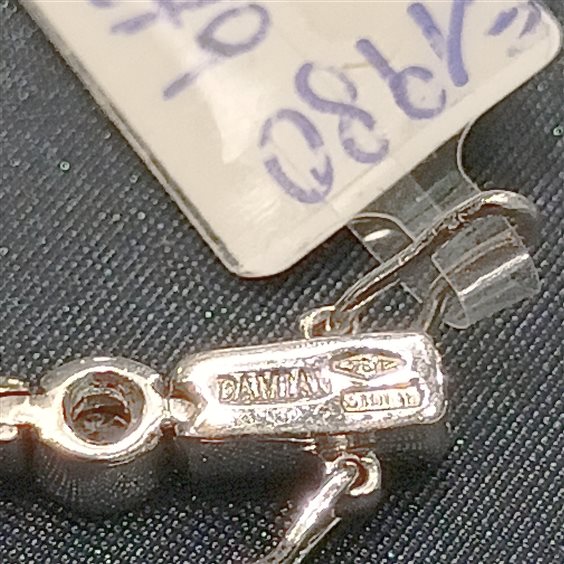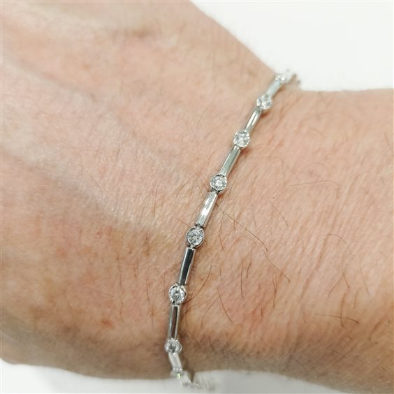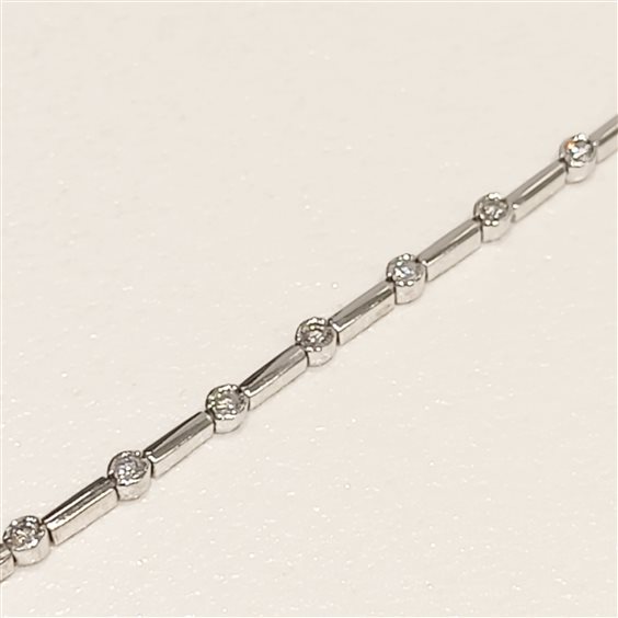 ELEGANTISSIMO BRACCIALE TENNIS IN ORO BIANCO E 19 DIAMANTI DA CT.0,04 CADAUNO TAGLIO BRILLANTE INCASSATI A NOTTE, CHIUSURA A SCOMPARSA E DOPPIA SICURA A "OTTO" SUI LATI. BRACCIALE PRODOTTO DALLA GIOIELLERIA DAMIANI, USATO IN OTTIME CONDIZIONI DI VENDITA.