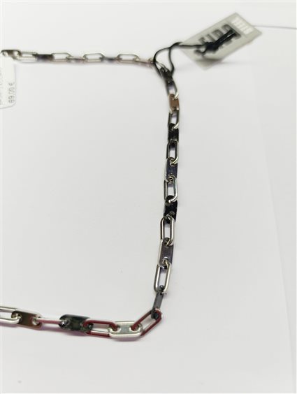 COLLANA SPORTIVA IN ACCIAIO BIANCO E PARTICOLARI BRUNITI.