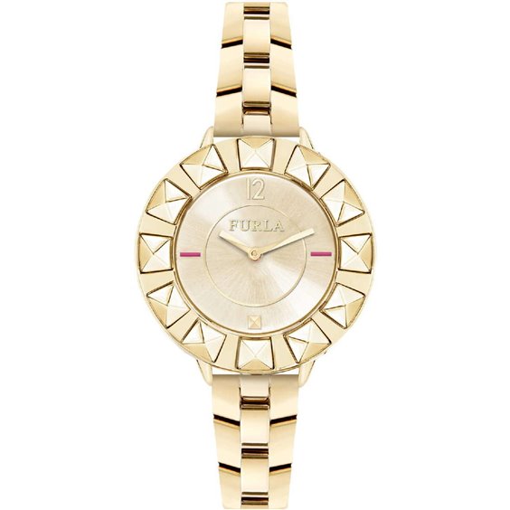 INFORMAZIONI PRODOTTO Prodotto: orologio solo tempo donna Furla Club R4253109501 Orologio Solo Tempo Da Donna Di Furla Della Collezione Club. Modello Con Cassa Della Dimensione Di 34 Mm, Caratterizzato Da Quadrante Di Colore Sunray Oro Giallo E Vetro Minerale. Questo Orologio Ha Bracciale In Metallo Di Colore Oro Giallo, Con Chiusura A Deployment Con Pulsanti. La Resistenza All'Acqua È Di 5 Atm. Modello Con Ghiera Intercambiabile: Sostituisci La Ghiera Di Questo Orologio Con Quella Aggiuntiva Presente Nella Scatola E Approfitta Dell'Opportunità Di Avere Due Modelli In Uno. La Referenza È R4253109501 Questo solo tempo verrà spedito con Scatola Originale Furla