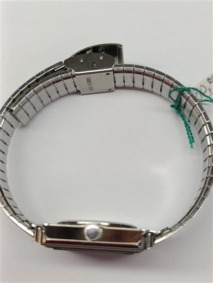 ELEGANTE OROLOGIO DA UOMO IN ACCIAIO, QUADRANTE DI FORMA QUADRATA COLORE BLU. SFERE ORE, MINUTI E SECONDI, DATARIO NUMERICO, CINTURINO IN ACCIAIO MAGLIA SEMIRIGIDA DEGRADANTE. CHIUSURA A CASSETTA REGOLABILE E SCONPARSA.