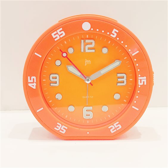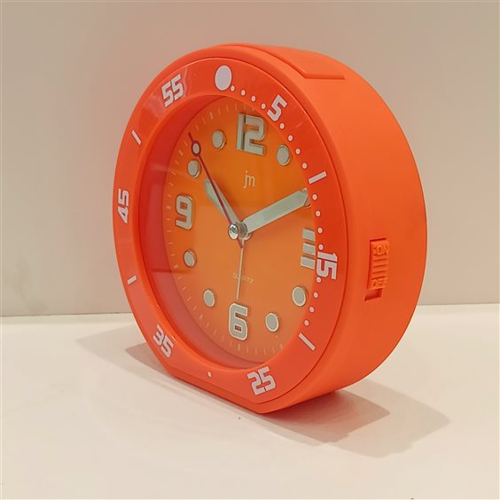 MODERNA SVEGLIA IN PLASTICA COLOR ARANCIONE CON NUMERI BIANCHI, ORE MINUTI E SECONDI , ALTEZZA CM. 13.