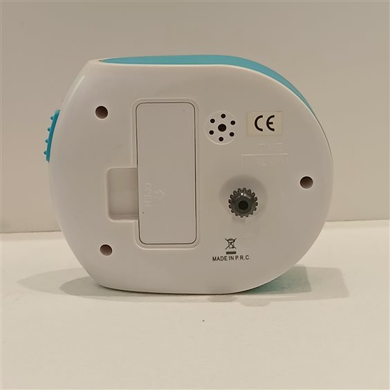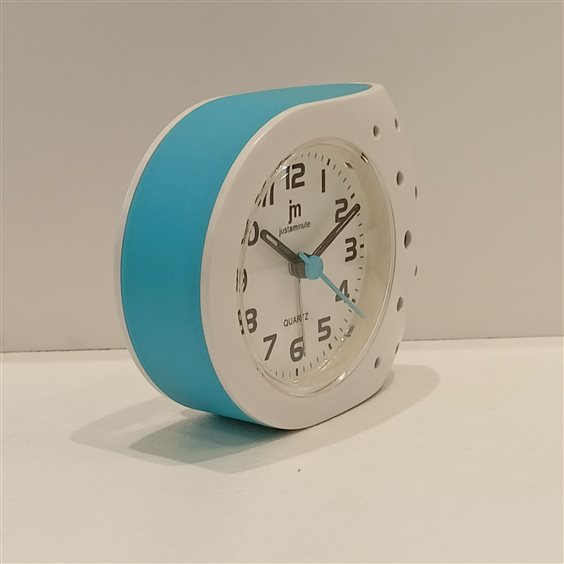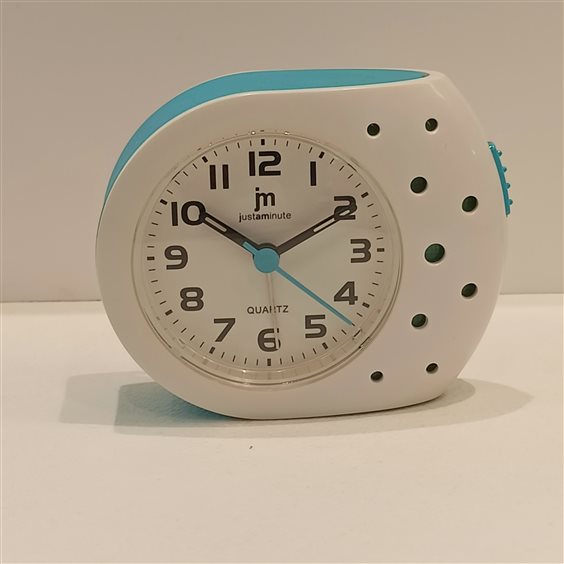 MODERNA SVEGLIA IN PLASTICA COLORE BIANCO E AZZURRO, ORE, MINUTI E SECONDI CON SCOCRRIMENTO SECONDI SILENZIOSO.