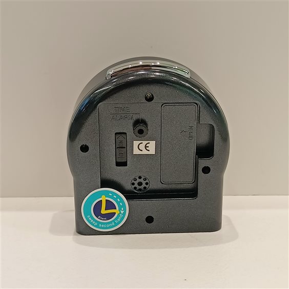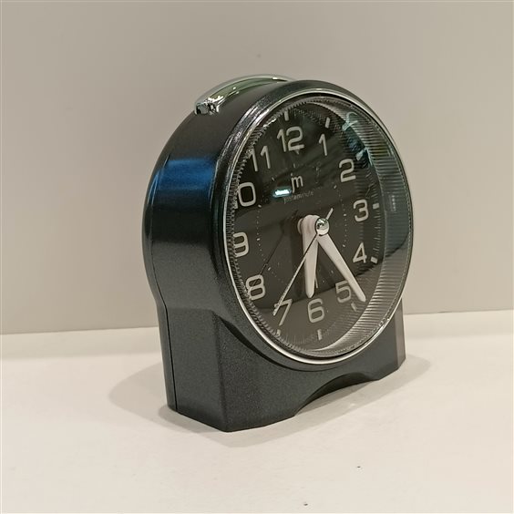 SVEGLIA DA COMODINO DI COLORE BIANCO CON UNA PARTICOLARITA' UNICA QUANDO SUONA SI ILLUMINA E LAMPEGGIA, MOVIMENTO CONTINUO SENZA TIC TAC SUONERIA ELETTRONICA CON PAUSA SNOOZE.