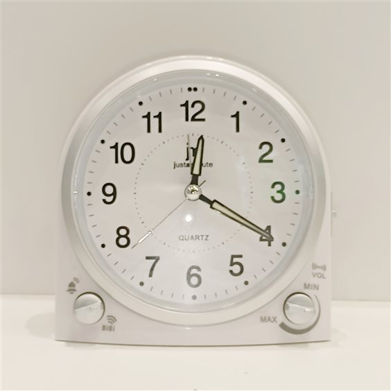PRATICA SVEGLIA IN PLASTICA CON ORE, MINUTI E SECONDI, SVEGLIA CON SCELTA DI DOPPIA SUONERIA: CAMPANA E BIP PIU REGOLAZIONE DI VOLUME. ALTEZZA CM.12.