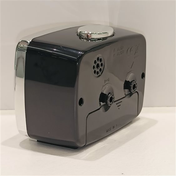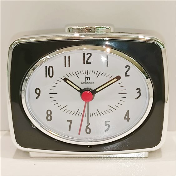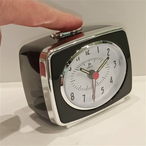sveglia rettangolare nera lucida con finiture cromate 9x7.5 sfere luminescenti sveglia con interruttore on off.