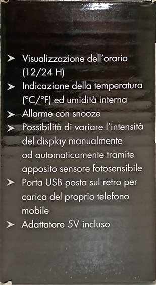 SVGLIA DIGITALE MULTIFUNZIONE COLORE NERO CON DISPLAY NERO E LED BIANCHI, INDICAZIONE DI TEMPERATURA E UMIDITA, PORTA USB PER RICARICA DAL TELEFONO