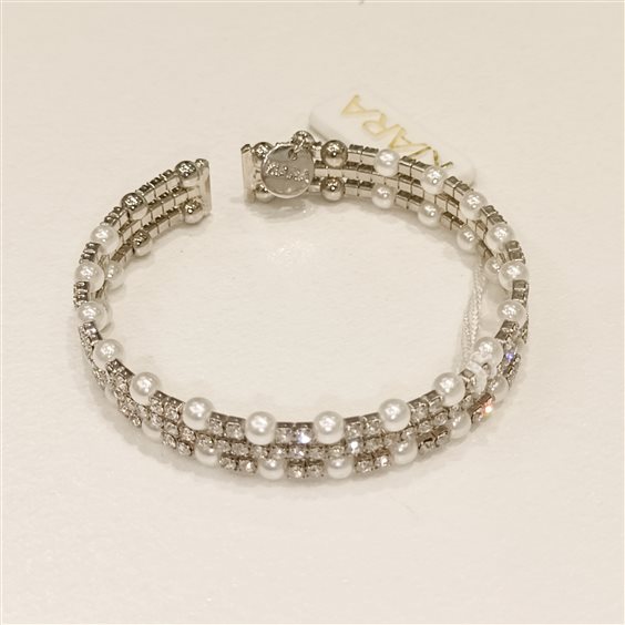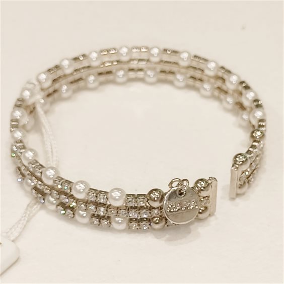 elegante bracciale elastico/rigido con perle mm4 e zirconi.