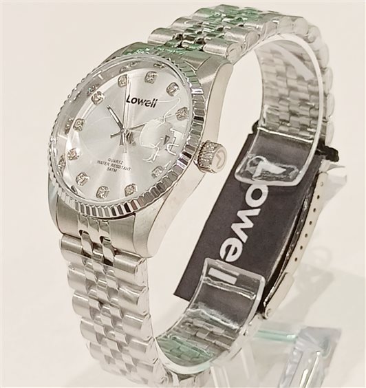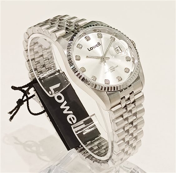 Cassa in acciaio lucido diam. 35/30 mm. Spessore 8,7 mm. Ghiera diamantata. Vetro minerale piatto. Corona a vite personalizzata. Fondello a vite. Larghezza ansa 20 mm.Movimento al quarzo Miyota 2115 Batteria SR626SW. Indicazione ore, minuti e secondi. Indici con pietre. Sfere luminescenti. Datario a finestrella ad ore tre con lentino. Bracciale jubilee in acciaio con chiusura deployante. fibbia di sicurezza - Water resistant 5 ATM (50 metri) - Peso 80 gr.