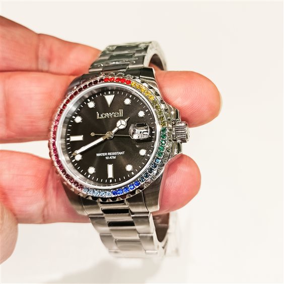 orologio dsl design importante e classico con un tocco di colore ottima costruzione. una qualità al top oltre la media. corona e fondo a vite.