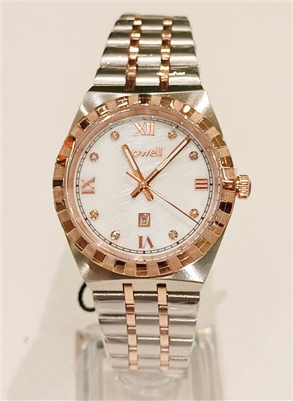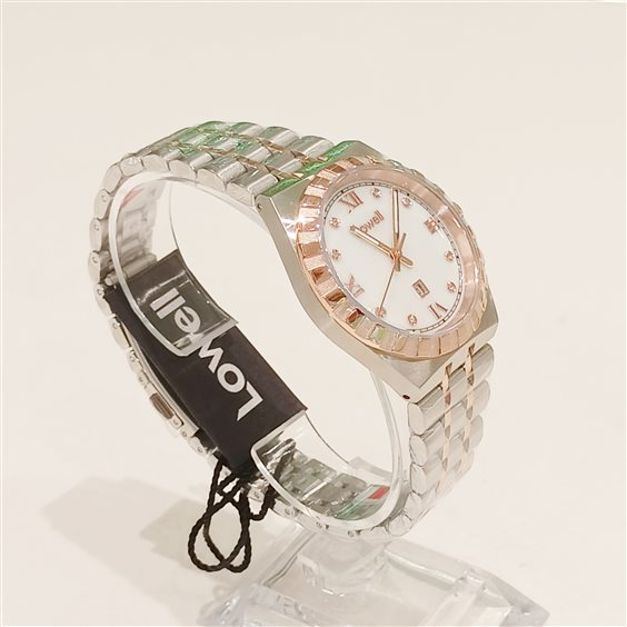 Orologio moda bicolore QUADRANTE MADREPERLA acciaio e acciaio rosa, indici con zirconi e numeri romani, cinturino regolabile con chiusura a pulsante. Ottimo rapporto qualita prezzo.
