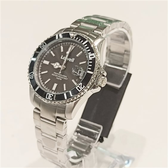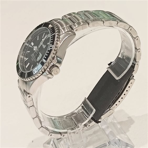 OROLOGIO SPORTIVO IN ACCIAIO, QUADRANTE E GHIERA COLORE NERO, SFERE ORE, MINUTI E SECONDI.