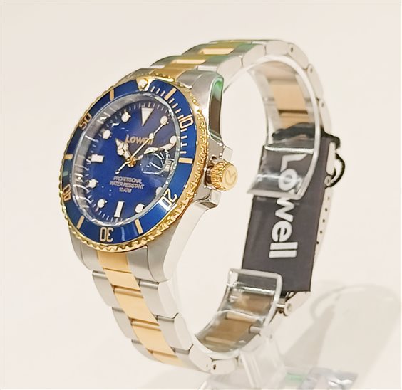Hurricane II gold - Cassa in acciaio PVD gold satinato e lucido diam. 40 mm. - Spessore 12 mm. - Vetro minerale piatto - Corona a vite personalizzata - Fondello a vite - Ghiera girevole unidirezionale con punto luminoso - Larghezza ansa 20 mm. - Movimento al quarzo Miyota 2115 - Batteria SR626SW - Indicazione ore, minuti e secondi - Numerali luminescenti in rilievo - Sfere luminescenti - Datario a finestrella ad ore tre con lentino - Bracciale solido in acciaio con chiusura deployante e fibbia di sicurezza - Dive suit extension per indosso sopra indumenti - Water resistant 10 ATM (100 metri) - Peso 126 gr.