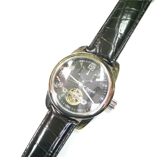 Alimentazione: CAIRCA MANUALE automatico indicazione di ore minuti secondi riserva di carica Cassa: Tonda Cinturino: , Pelle Corona: A pressione Fondello: A vite Materiale: Acciaio Quadrante: Nero Vetro: Minerale , Bombato Water resistant 50 mt Maggiori Dettagli Anse: 22 mm. Chiusura: Fibbia Cinturino: In pelle stampa cocco Diametro cassa: 44 mm Finitura movimento: finitura a Côtes de Genève, viti azzurrate Fondello: Con oblò in vetro minerale serrato a vite Indici: Stampati Jewels: 20 Movimento: Meccanico Numeri: Indici stampati Spessore: 13 mm. Vetro: Minerale curvato a lente