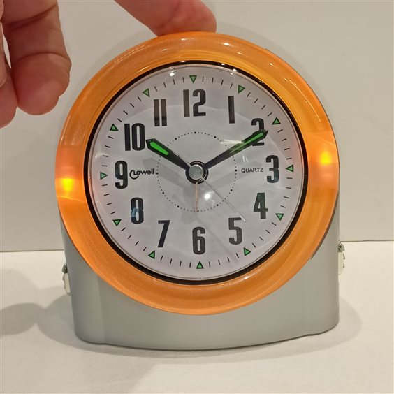 SEGLIA IN PLASTICA MULTIFUNZIONE CON SUONERIA A BEEP LUCE E SNOOZE. COLORE LUNETTA GIALLO.