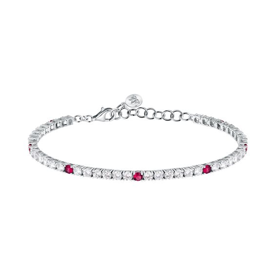 BRACCIALE MORELLATO TESORI - SAIW139 - Genere : Donna, Misura: 16+3 cm, Colore: Silver, Morellato experience: Argento 925‰, Modello: Tennis, Materiale: Argento 925‰, Gemme, Peso: 6 gr, Diametro Perle: 2.8mm mm, Pietra: Zirconi, Colore pietra: Bianco, Rosso, Certificato di autenticità: Sì, Confezione: Originale Morellato