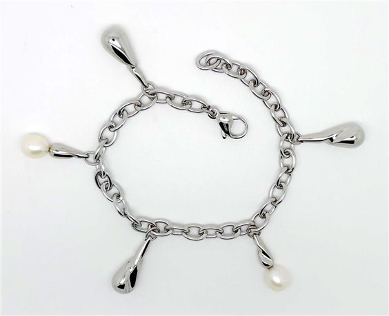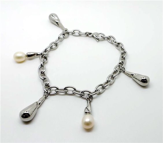 bracciale in acciaio e perle naturali coltivate ovali, misura regolabile