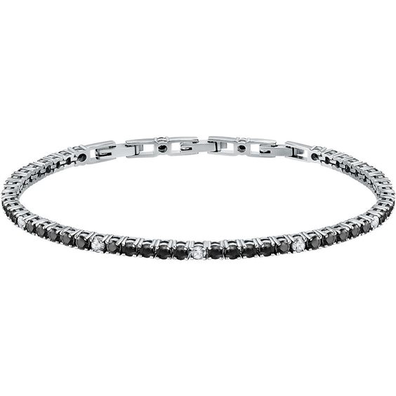 BRACCIALE MORELLATO TENNIS - SATT10 - Genere : Uomo, Misura: 20 cm. accorciabile a 19cm. Colore: Silver, Nero, Morellato experience: Man, Materiale: Argento 925‰, Peso: 10 gr, Diametro Pietre: 3mm, Pietra: Zirconi, Certificato di autenticità. Confezione: Originale Morellato