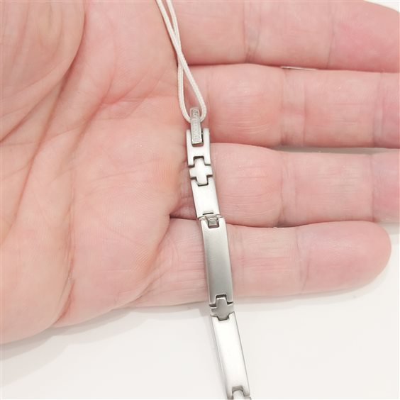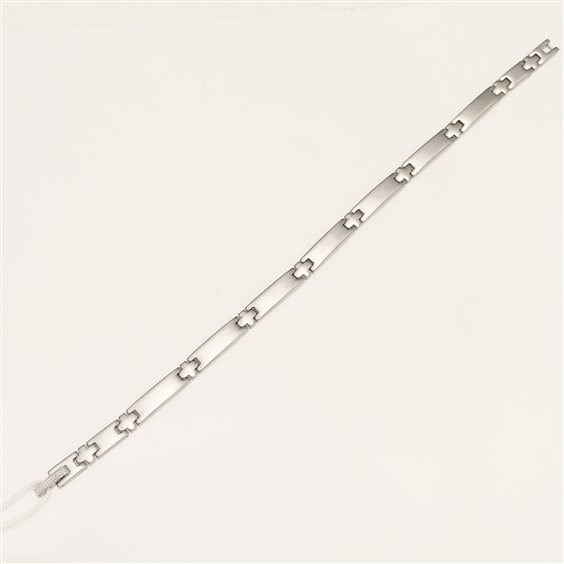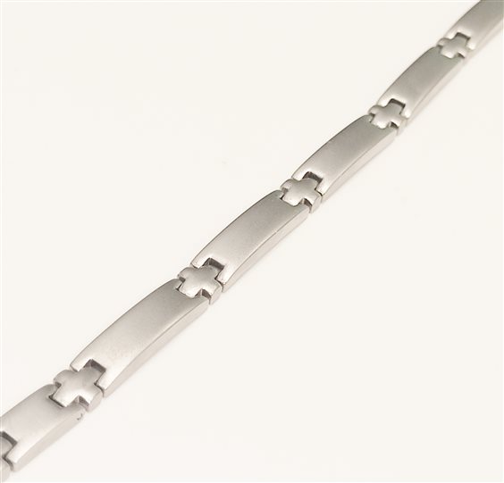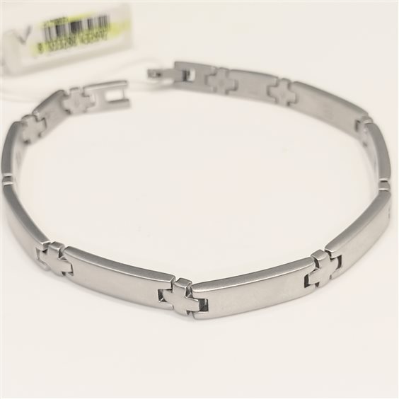 BRACCIALE SPORTIVO DA UOMO, IN ACCIAIO SATINATO CON MAGLIE INTERE PIENE E SNODATE A FORMA DI PICCOLE CROCI A MOTIVO FANTASIA.