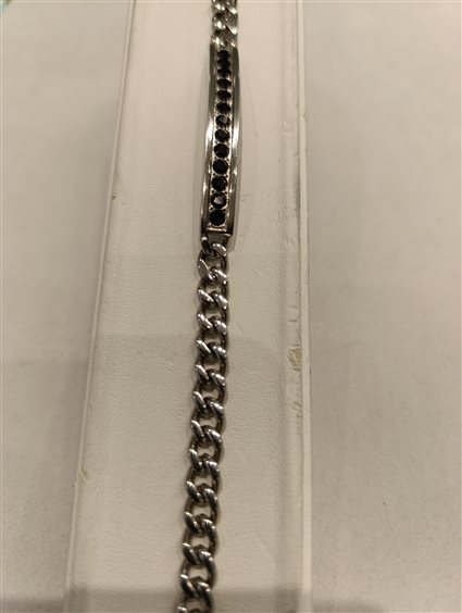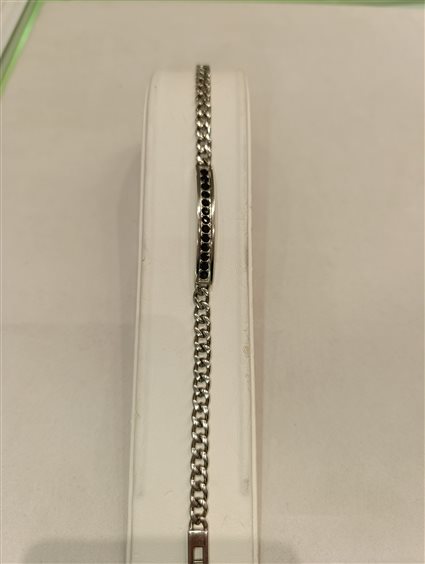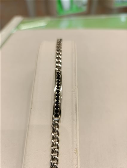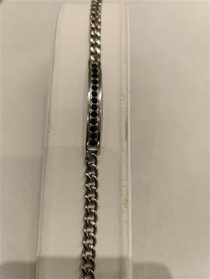 MODERNO BRACCIALE DA UOMO A MAGLIA CON PIASTRA RIGIDA E BINARIO DI ZIRCONI COLOR NERO.