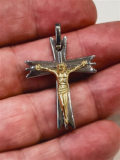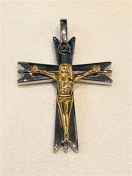 CROCE IN ACCIAIO E ORO LAMINATO GIALLO