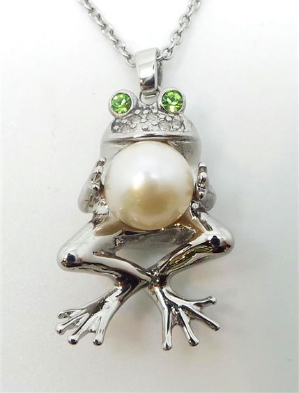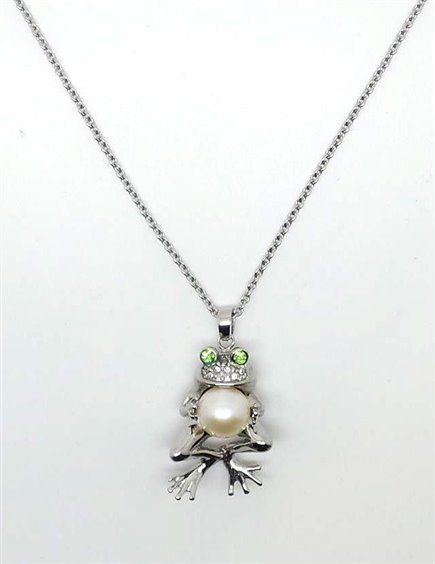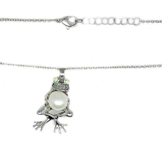 MORELLATO ANIMALIA collana girocollo in acciaio maglia rolo' con ciondolo rana che porta in dono una perla. LUNGHEZZA: CM 45 accorciabile sino a cm 42 grazie ad anellini sulla maglia. DIMENSIONE: ciondolo rana cm 3 x 1,5 perla mm 7,5/8 / cristalli bianchi e verdi