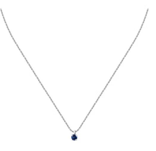 Collana in argento e ciondolo punto luce con zircone blu mm 5, catenella finale da 40 a 45 cm