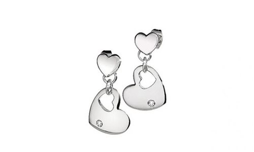 Orecchini donna in acciaio 316L , pendenti lunghezza cm 2 , diamanti naturali. Immagine indicativa , la confezione può variare in forma e colore.