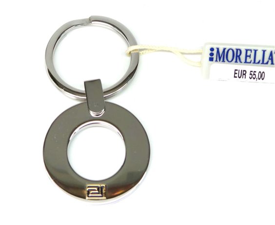 PORTACHIAVI, ACCIAIO CON LOGO IN ORO, LUCIDATO A SPECCHIO, ANELLO PASSA CHIAVI. .
