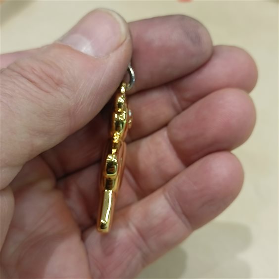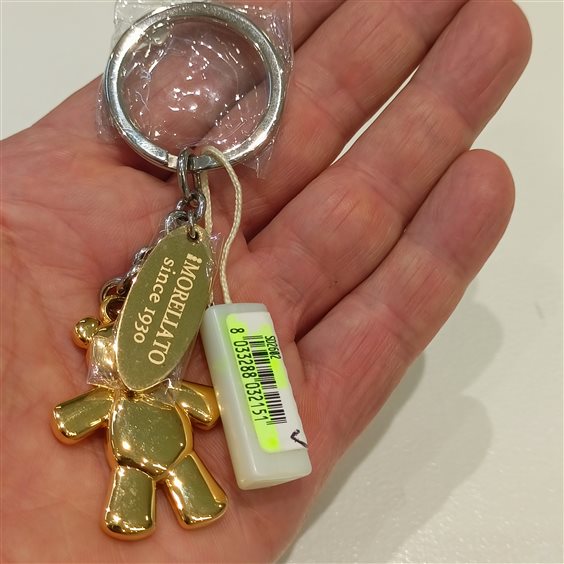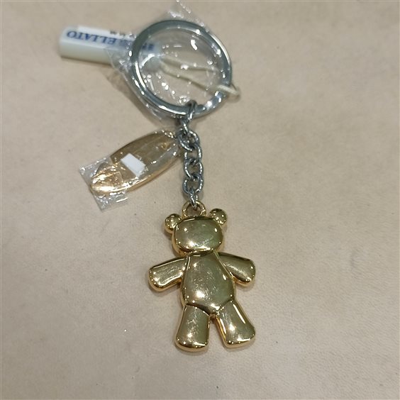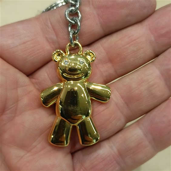SIMPATICO PORTACHIAVI IN ACCIAIO CO CATENA E ANELLO BIANCO E SOGGETTO ORSO DORATO CON DUE ZIRCONI INCOLLATI SUGLI OCCHI.