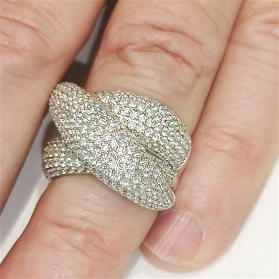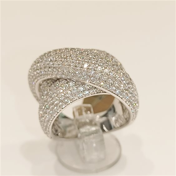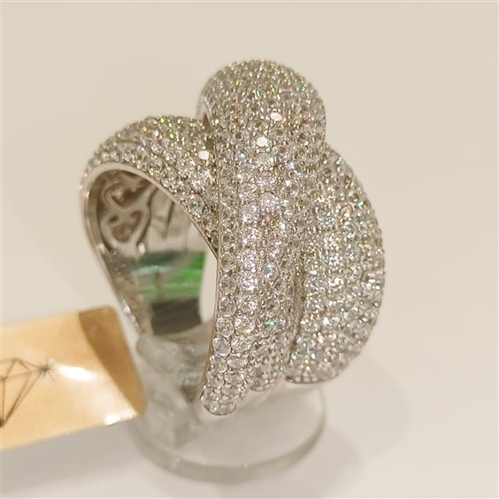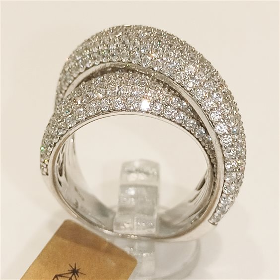 Importante Anello in argento e zirconi incassati a griffe, modello MARA VENIER: fascia intrecciata.